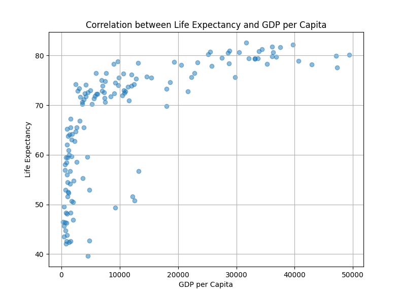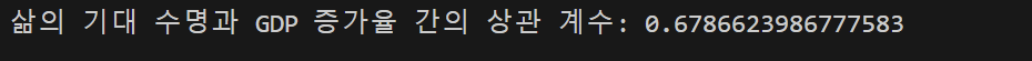 2) 국가별 삶의 기대 수명과 GDP 증가율 간의 상관관계 알아보기