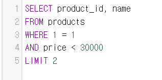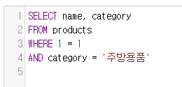 예제2) WHERE '항상 참인 조건' AND