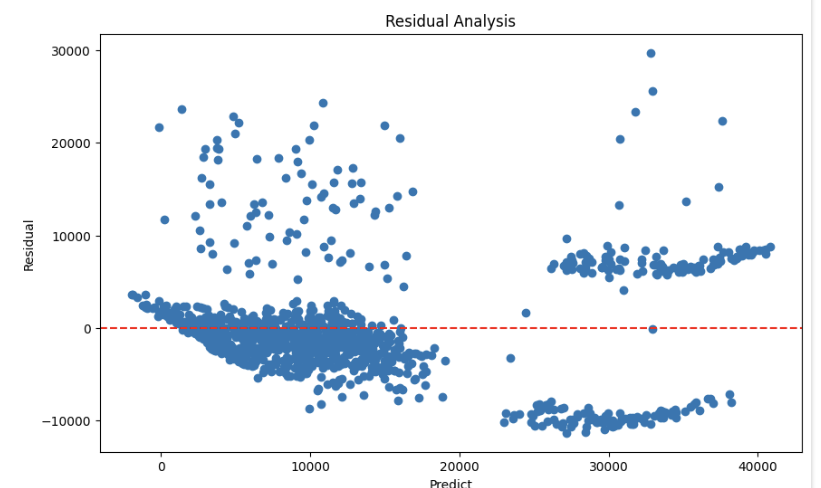 예측값이 작을수록 정답과 가까워짐, 예측값이 크면 잔차가 커지는 특성을 보임